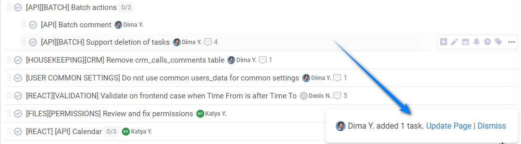 Unread notifications in items you follow: progress changes, edits, comments, mentions, etc.