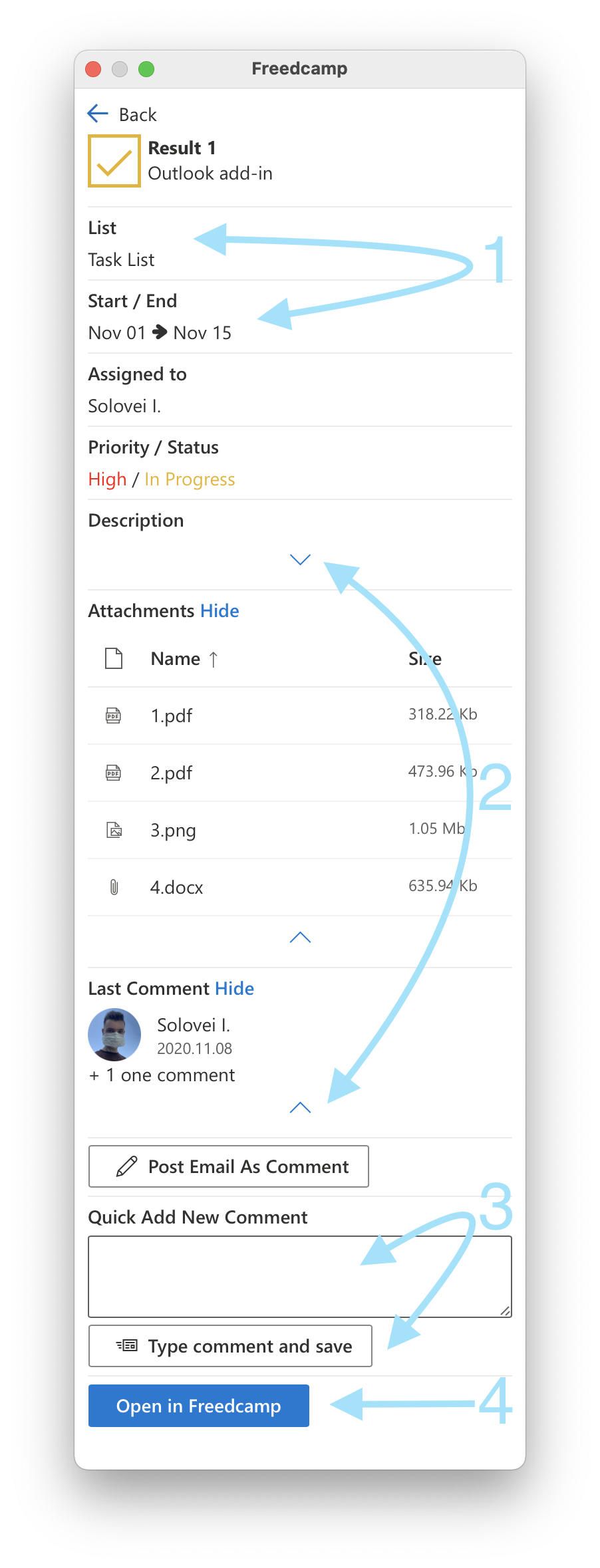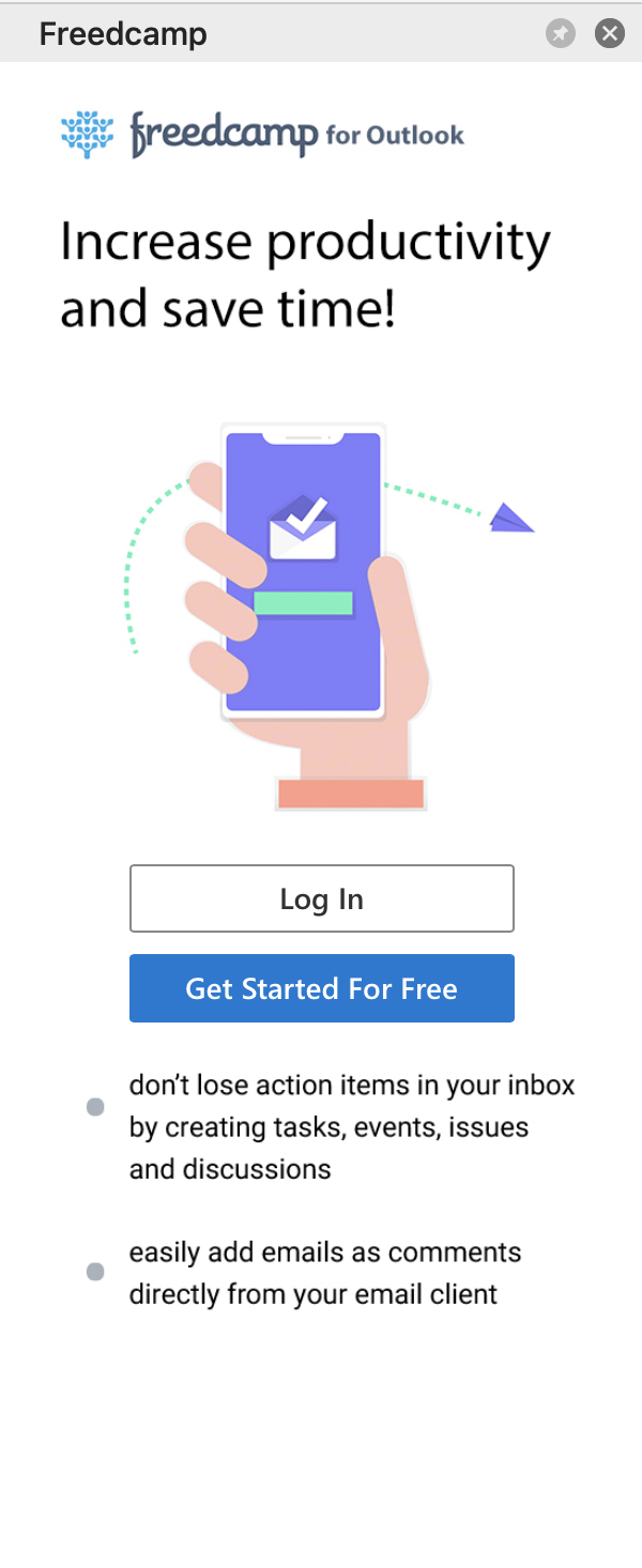 Increase productivity and save time with the Freedcamp add-in for Outlook.