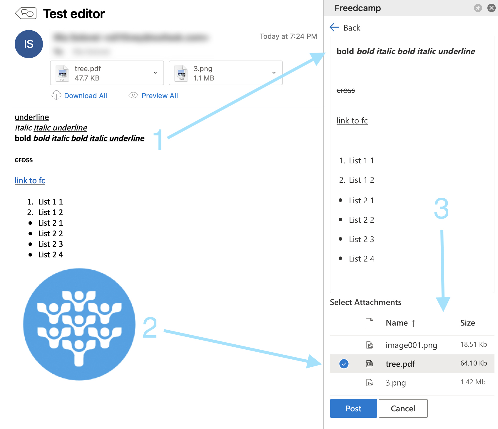 (3) you can select what attachments you want to post