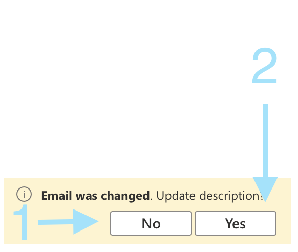 After switching the email an alert message will be displayed:
