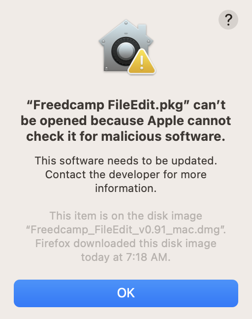 When installing on MacOS you may see the following prompt