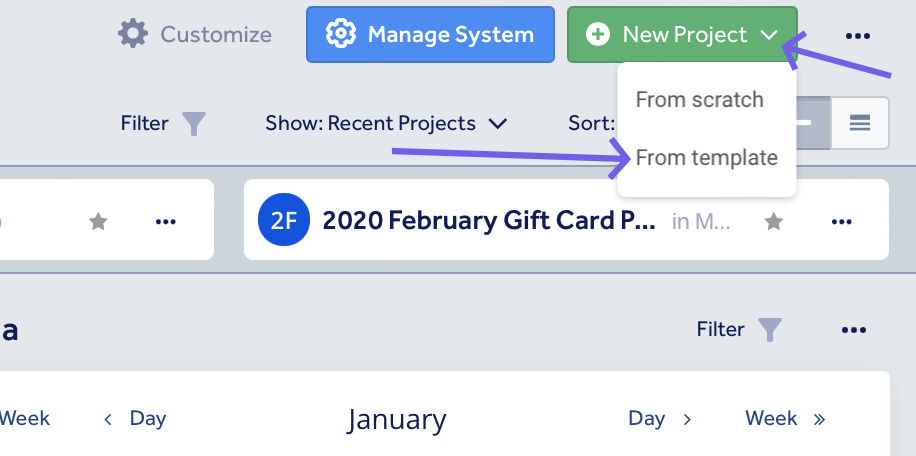 Projects can be managed from the Projects Dashboard and the Manage System page.