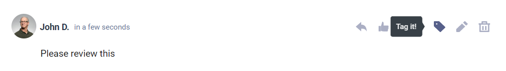 Tags will appear below a comment. To add more tags - use 'Tag' icon or hover your mouse over existing tags to activate tags interface.