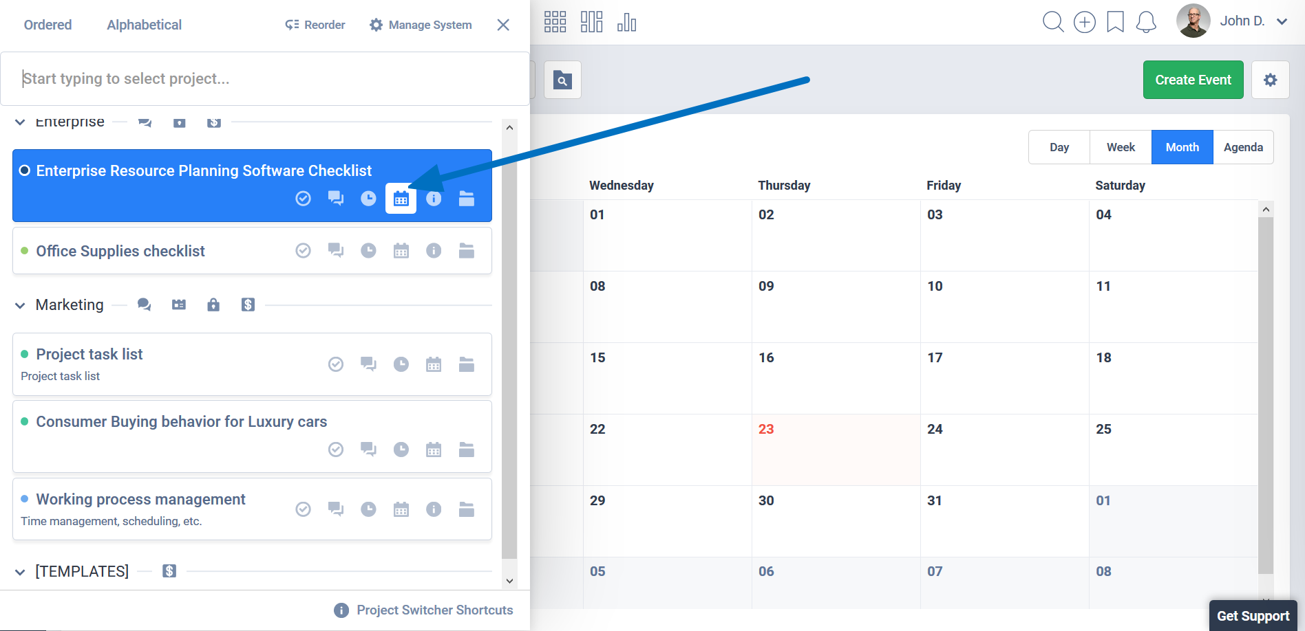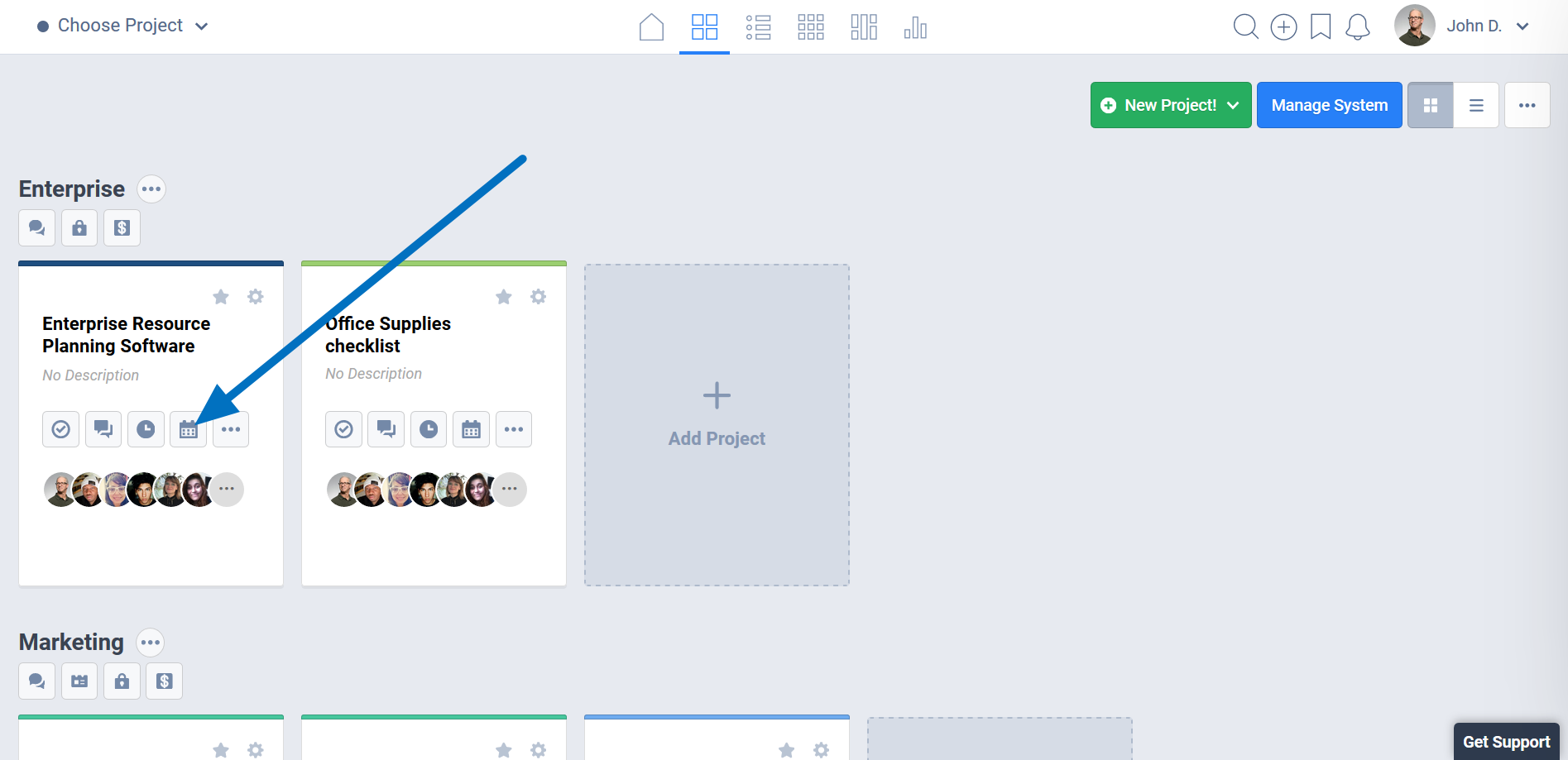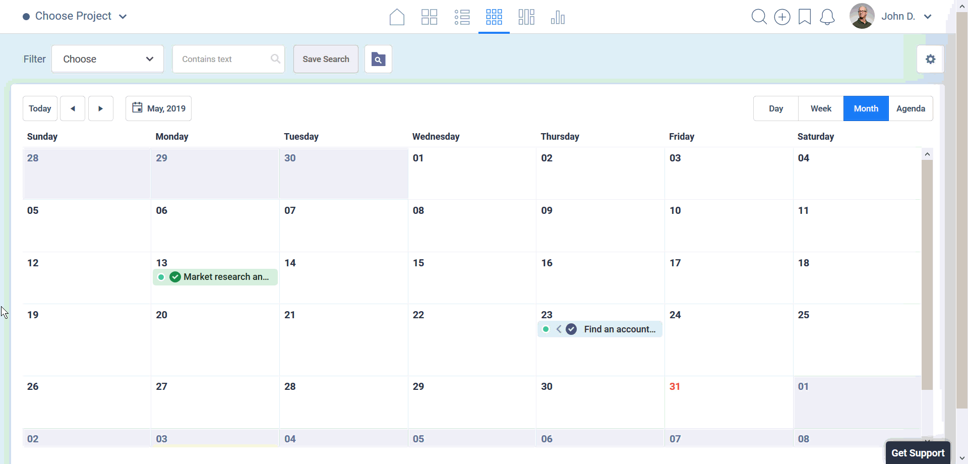 This also applies to the Calendar Board, except you’ll be prompted to choose the desired project after selecting the date.