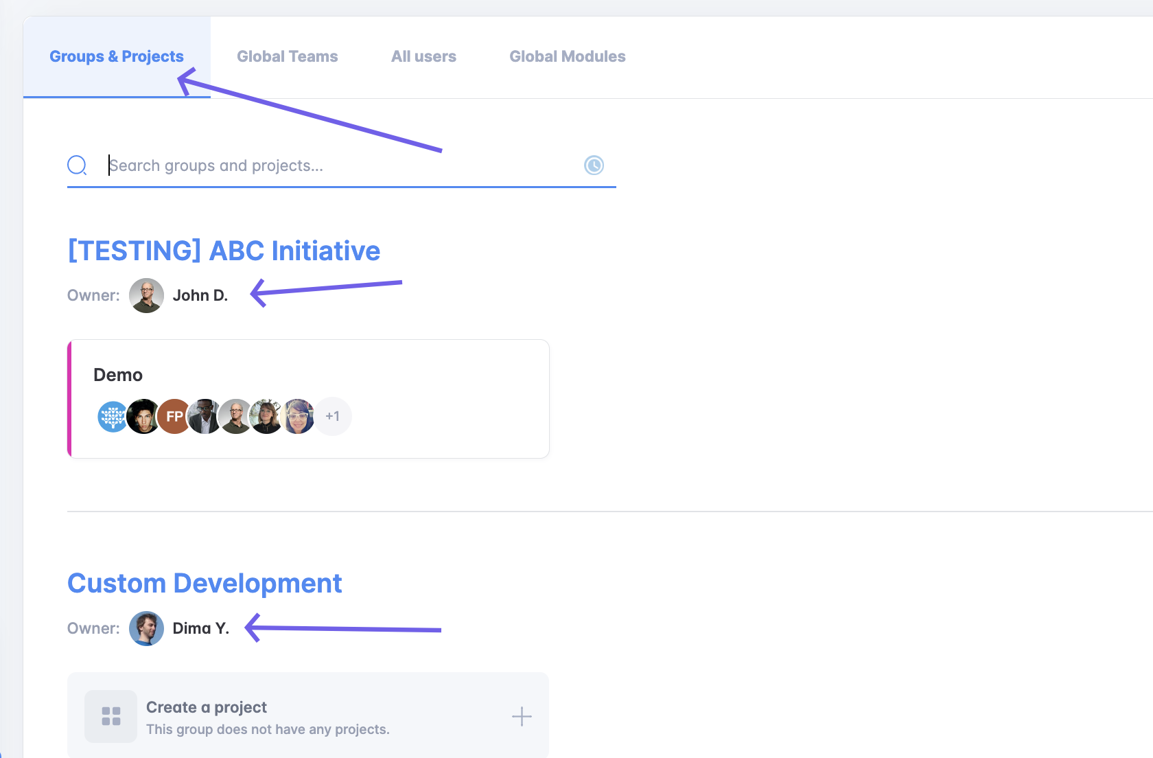 To move projects between project groups with different owners, please see the last section.