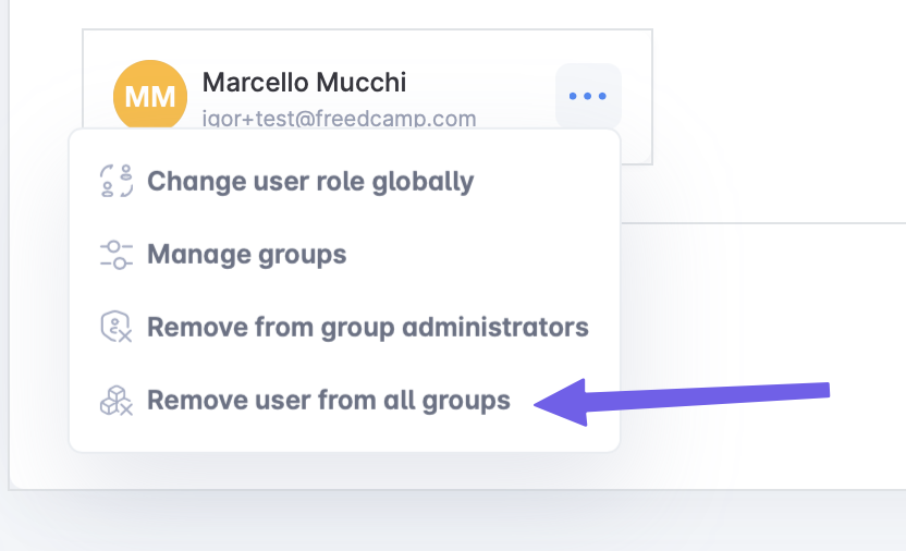 The context menu for a user also allows you to remove a user globally from all groups you own: